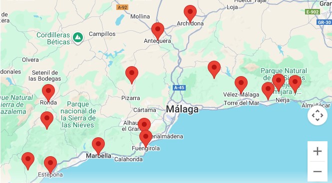 - Axarquía: Frigiliana, Cómpeta, Nerja, Torrox, Canillas de Aceituno